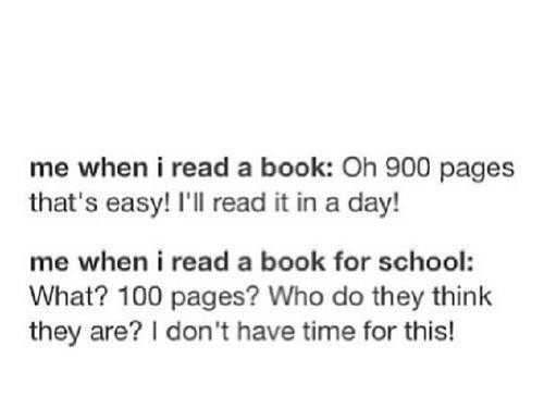 |  | Я, когда читаю книгу: О, 900 страниц это легко! Прочту за день! Я, когда нужно прочесть книгу к школе: Что? 100 страниц? Что они о себе возомнили? У меня нет времени для этого!  | | Комментариев: 0 | Поделиться: ]]> :3]]> ]]> :]]> ]]> :3]]> ]]> :4]]> ]]> :5]]> ]]> :4]]> :0 ]]> :3]]> |