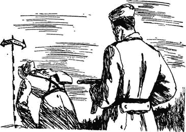 Некоторое время он смотрел вслед удалявшейся повозке, потом не спеша подошел к одному из двух столбов с указателями, поставленными по правую и по левую стороны шоссе. На дощечках, прибитых к столбам, были указаны направления сторон света, название ближайшего населенного пункта и расстояние до него. Автоматчик