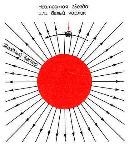 Это напоминает нам историю спутников Миры, о которой здесь уже говорилось. Белый карлик, который обращается вокруг Миры, собирает на себя вещество. Почему же он не является рентгеновским источником? Возможно, он слишком удален от звезды, и на него попадает лишь малая доля уходящего со звезды вещества-достаточно, чтобы излучать в видимой области, но слишком мало, чтобы мы наблюдали его как рентгеновский источник.