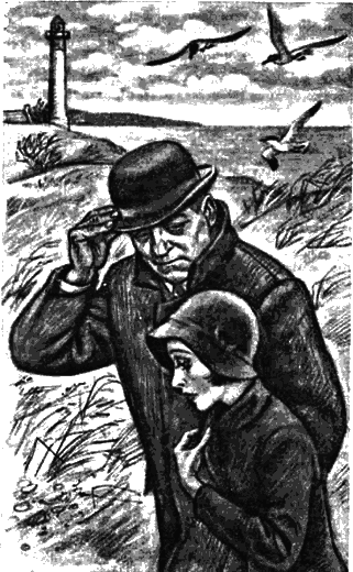 Мегрэ, нахмурив лоб, уже выходил из гостиницы. Он быстро пересек мост, и, когда вышел на берег, Жюли опережала его всего на две сотни метров. Было безлюдно. Только чайки с громкими криками летали в тумане. Справа возвышались дюны, за которые комиссар зашел, чтобы оставаться незамеченным. Чувствовалась прохлада. Море было неспокойным. Его белая кромка разбивалась о берег с частотой дыхания; шуршали раздробленные ракушки.