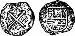 Король Испании Карл I (он же — император «Священной Римской империи» Карл V) в 1535 г. издал указ об открытии монетного двора в г. Мехико. Через год там стали чеканить монеты достоинством от 1/4 до 4 реалов. Чеканка производилась вручную, тем не менее монеты имели правильную форму. Но с 1572 по 1732 г., в целях ускорения производственного процесса, в Мексике, а затем и Перу стали чеканить грубые, угловатые по форме монеты, которые назывались макукинами. Восьмиреаловая макукина соответствовала по массе и пробе европейскому талеру. С 1600 г. на макукинах стали обозначать дату, как это видно на четырехреало-вой макукине 1612 г. (рис. 70). В 1732 г. на монетном дворе в г. Мехико был установлен первый в Америке механический пресс, который позволил чеканить совершенно круглую монету с рисунком на гурте (рис. 71).
