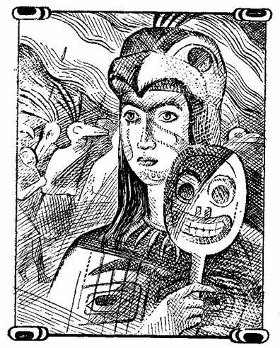Индейцы, заметив лодку, выхватили из костра пылающие ветви и застыли в торжественном молчании. И Загоскин увидел девушку-тойона Ке-ли-лын. Она в алом одеянии и кольчуге из мамонтовой кости стояла возле самого костра, и по ее лицу пробегали тени от дыма и свет пламени. И вновь сила, которая была крепче его сердца, неудержимо повлекла Загоскина на зов костра. Ему сначала казалось, что лодка погружается в грохочущий пенный водопад. Потом он перестал сознавать происходящее.