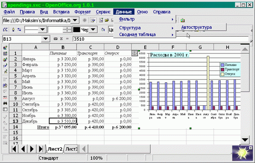 «OpenCalc» реализует такие средства, как: