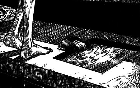 В каменный стол был вделан холодильный колодец, в котором медленно, но непрерывно струилась ледяная вода. Однако он ничего не холодил, кроме комка желтого масла, масло это было полно ножей, и в еду не годилось.