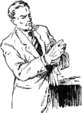Кручинин оглядывал каждый уголок, каждый предмет. Его особенное внимание привлекли валяющиеся на рояле светло-жёлтые мужские перчатки довольно несвежего вида. Он даже примерил одну из них, но поспешно отбросил, заслышав шаги хозяйки. Через минуту он сидел на низеньком пуфе перед каким-то смешным турецким столиком и с аппетитом поедал глазунью, благоухающую кипящим сливочным маслом. За глазуньей последовала клубника с молоком, за клубникой — кофе. Кручинин ел так, будто голодал неделю. Грачик с завистью глядел на него и прислушивался к урчанию собственного пустого желудка. Ему было неловко напомнить Фаншетте о своём существовании, а она по какой-то странной забывчивости даже не предложила ему присесте к столу. Только поставив на стол кофе с халвой, она вдруг вспомнила и о втором госте. Несмотря на желание демонстративно отказаться от угощения, Грачик не нашёл в себе силы это сделать — он слишком любил халву. Поев и закурив, Кручинин несколько раз прошёлся по комнате. Его взгляд снова остановился на жёлтых перчатках. Хозяйка тоже взглянула туда и, увидев перчатки, вскрикнула и словно в испуге прикоснулась к виску.