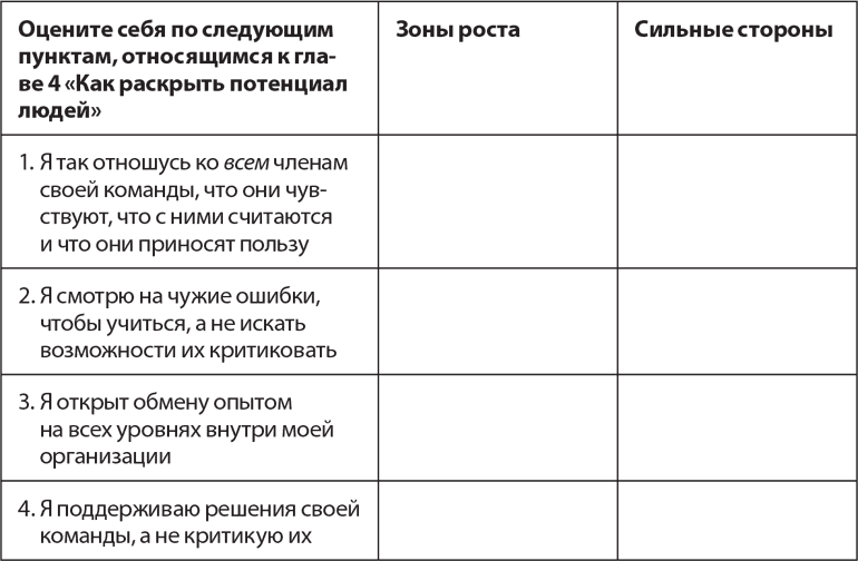 Взгляните на карту «Вести людей за собой» в главе 1 и задайте себе следующие вопросы. Используйте различные цвета, дополнительные листы бумаги и так далее, чтобы обновить или что-то добавить на карте «Вести людей за собой», записать свои мысли и действия.