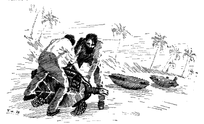 — Потому что мы их перевернули. Это — плоды нашей охоты, — отвечал Симон. — Раздобыть панцырь черепахи не так-то просто. Поэтому охотники, застав черепах на берегу, переворачивают их на спину. Очутившись в таком положении, черепахи не в состоянии самостоятельно перевернуться на брюхо. Так они и будут лежать на спине, пока не издохнут и тело их не сгниет под палящими лучами солнца.